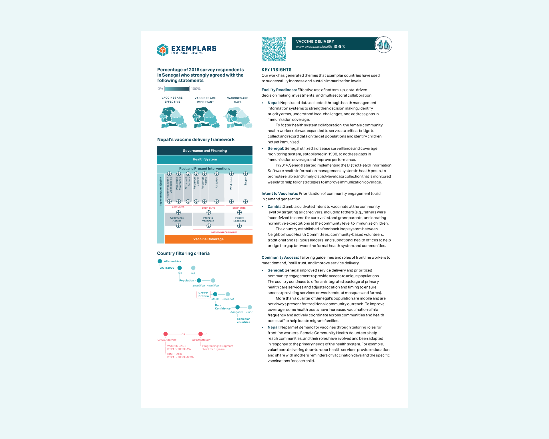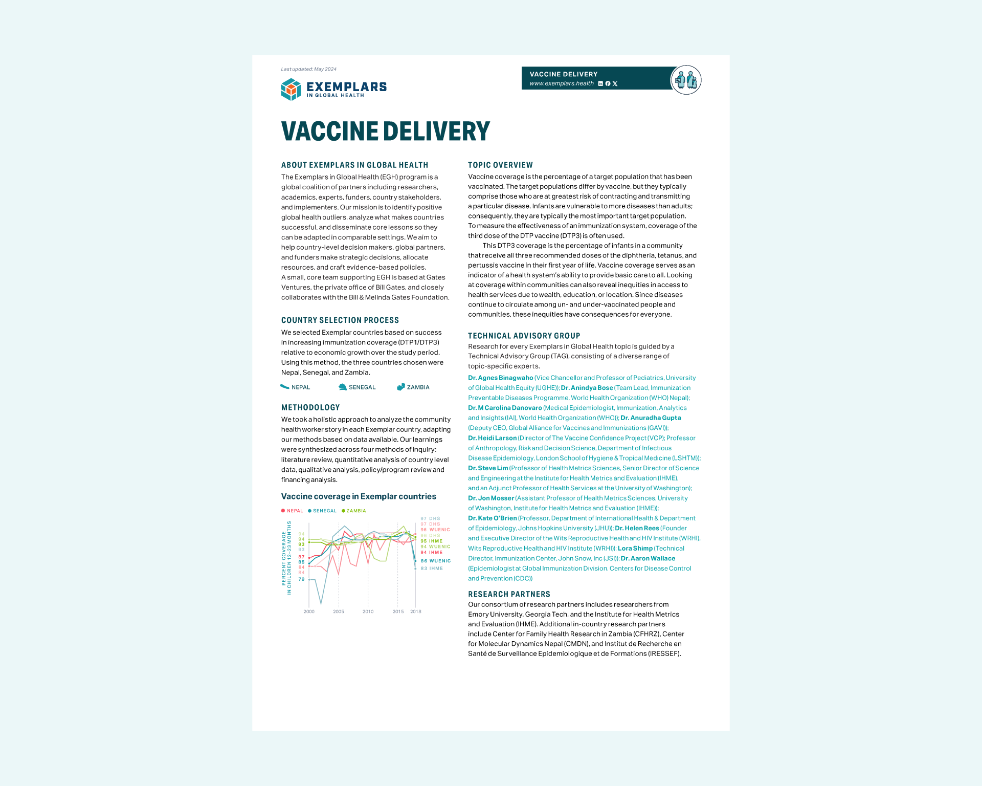 These deliverables are similar to Topic Overviews, with more granular focus given to the research progress of specific Exemplar countries.