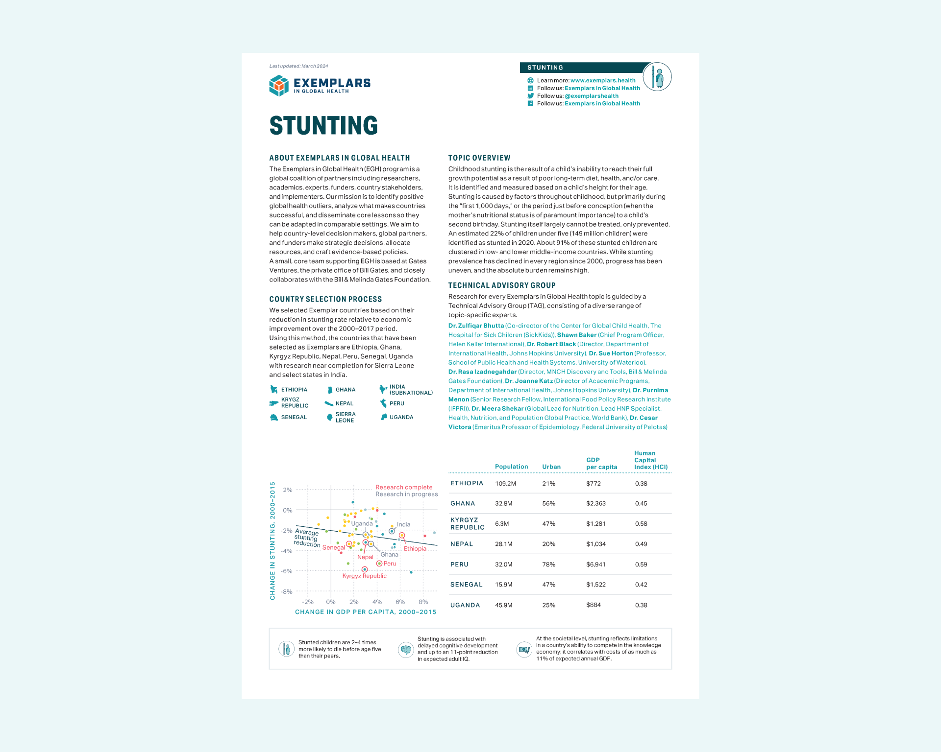 Briefs are multipage documents that narrow in on a specific thematical concern within or across EGH topics. Briefs cover a wide range of global health topics, but generally fall into the catgories of in-depth thematic analysis or the synthesis of insights across different countries within a topic.