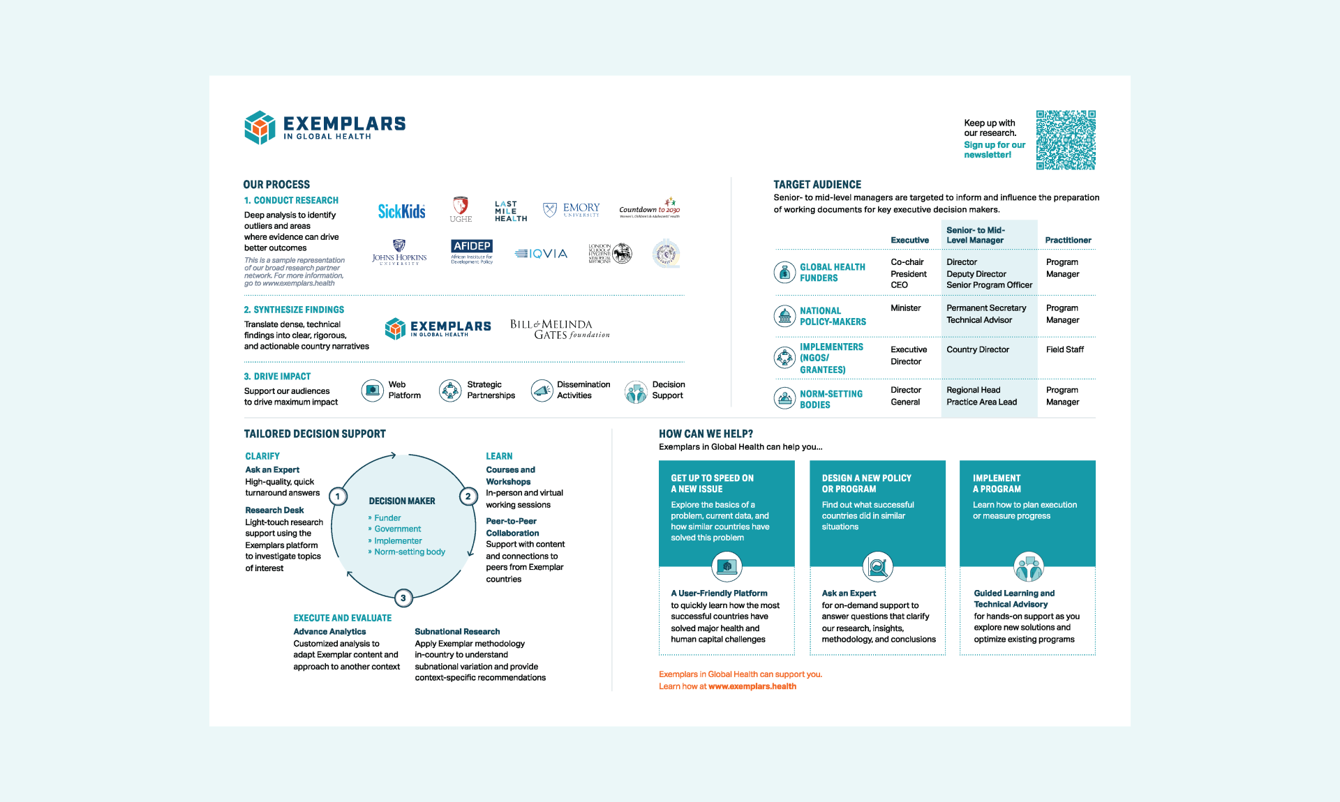 EGH topic teams frequently participate in global events, necessitating a quarterly update and creation cycle for event-related collateral. Updates and new material creation are completed during a two week sprint cycle and necessitate expert-level, high fidelity execution of design requests. Material types leverged during quarterly design support include the EGH program overview, topic overviews, country-specific topic overviews, evergreen collateral, and more.